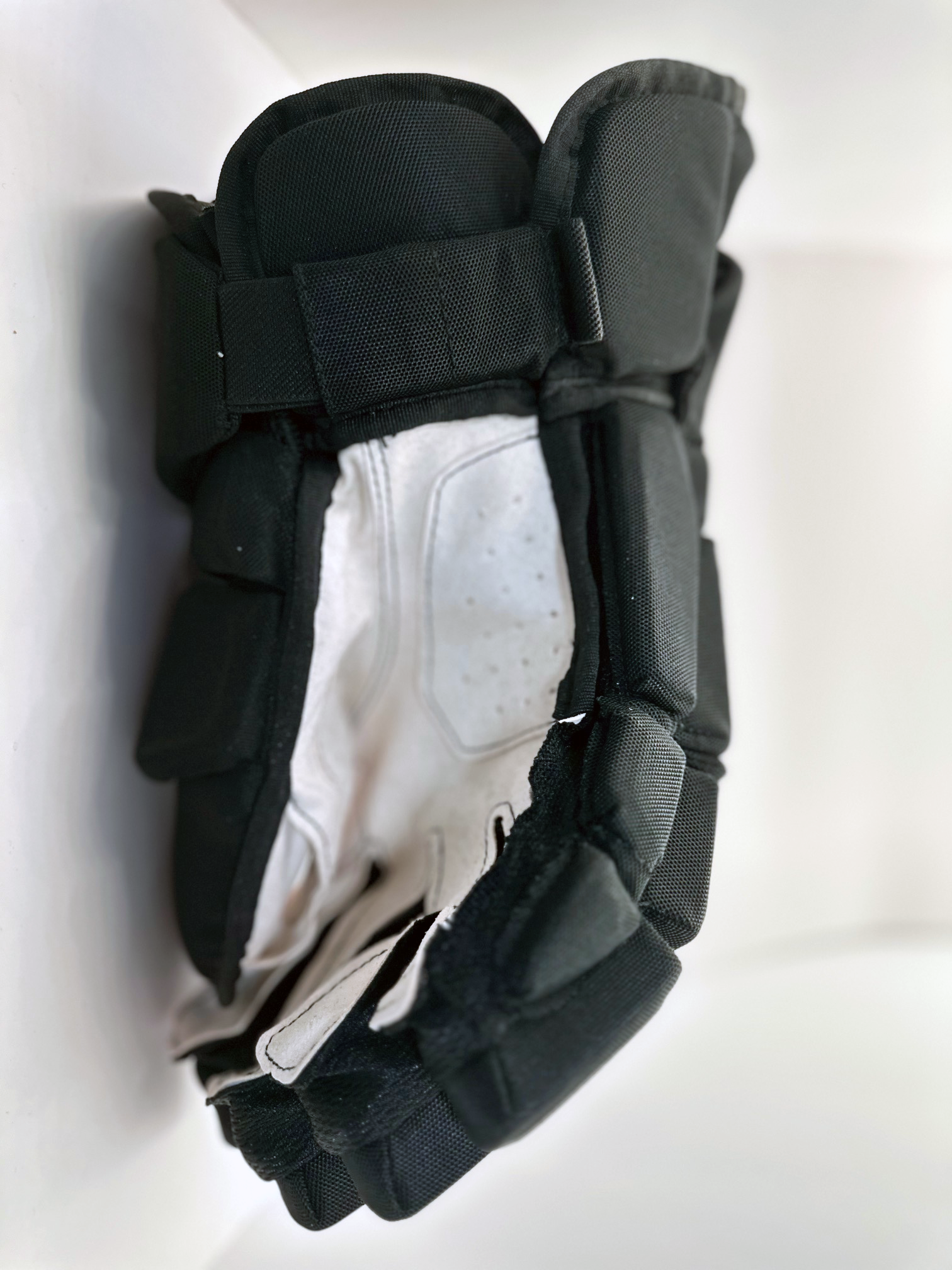 The NEW 2024 REVOLT Hockey Gloves boast dual-density foam plus hard inserts, an elastic hinged cuff, ventilated mesh fingers, 3D Puff Embroidered logo on the cuff, and a soft mesh lining on the inside. They also have reinforcements at key areas to increase the life of the palm.